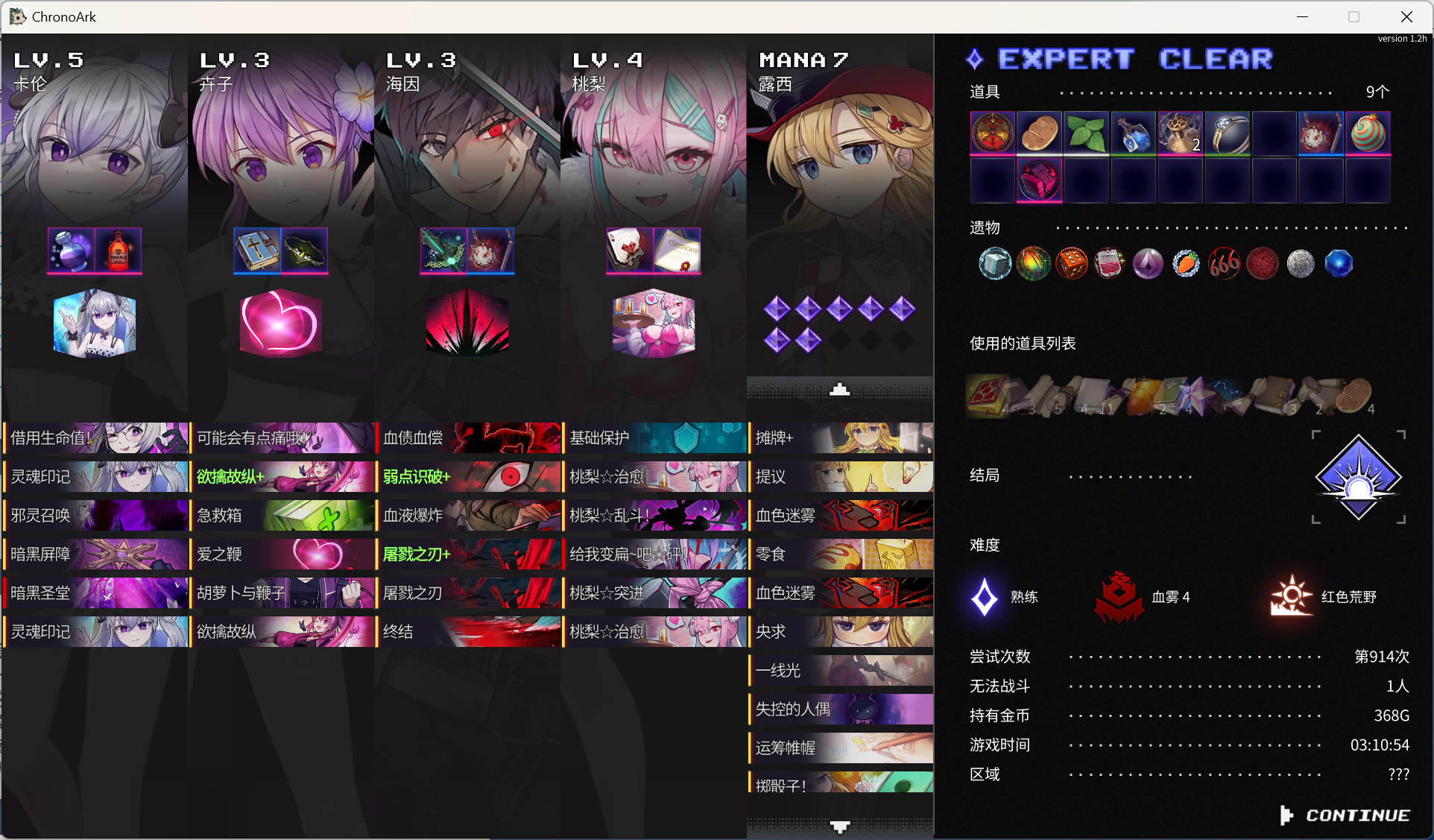二选出桃梨,非常梦幻了。之后看到治愈就选(总共拿了 3 个治愈),打一个庞氏骗局,荒野基本都能在欲望爆掉之前打完,到雪地更是拿到一线光,都不用骗了。