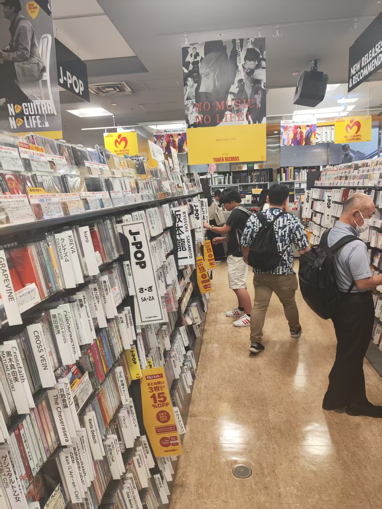 Tower Records:nb!感觉是听的音乐越多的人越会兴奋的地方;即使我听的不多,也能找到很多感兴趣的 CD。虽然曾经有盲买一些没听过的摇滚专辑的想法,但是后来打消了这个念头,感觉来日本就得买点日本小偶像的专辑,于是给结束乐队、EGOIST、milet、异世界情绪狠狠上供了。
