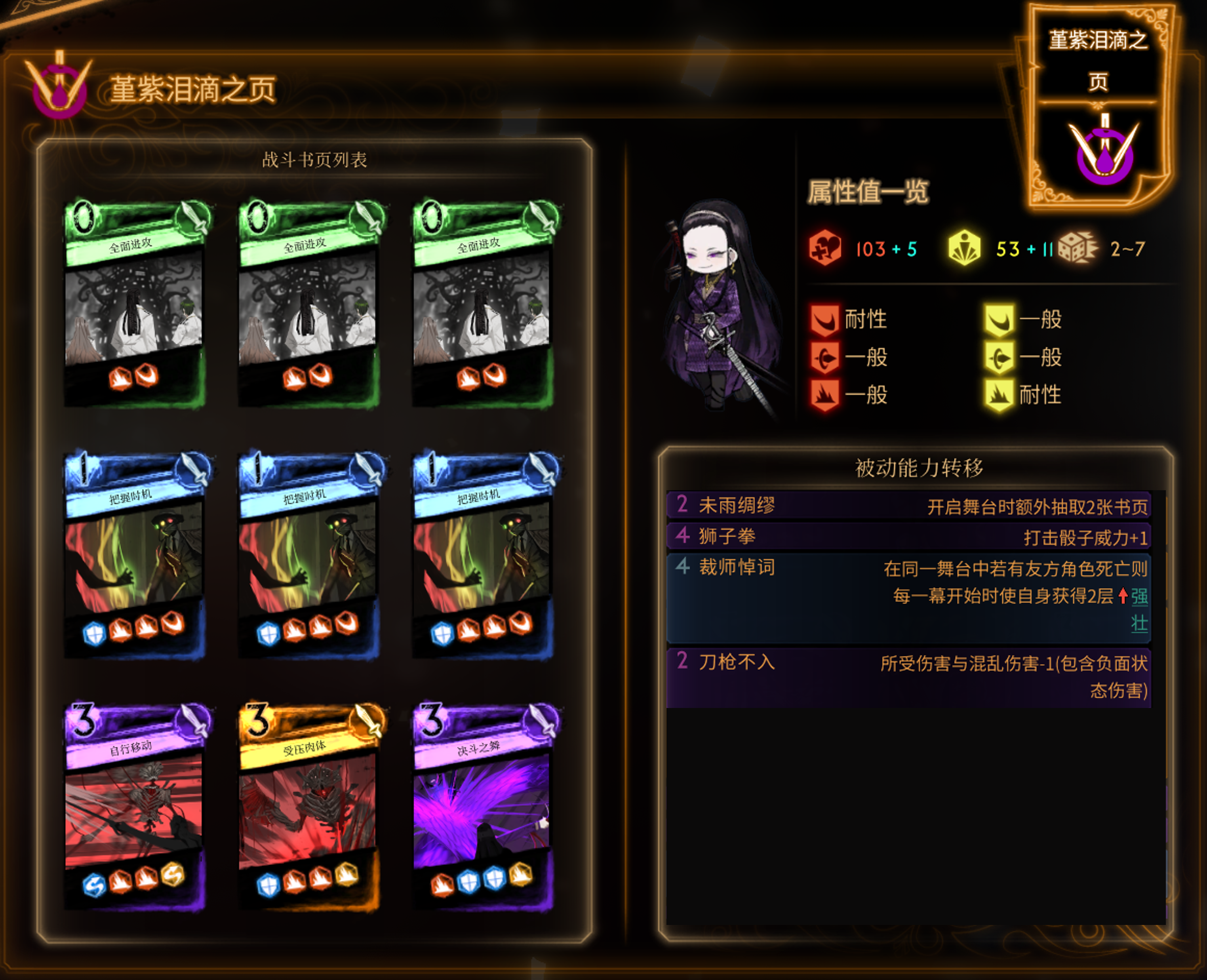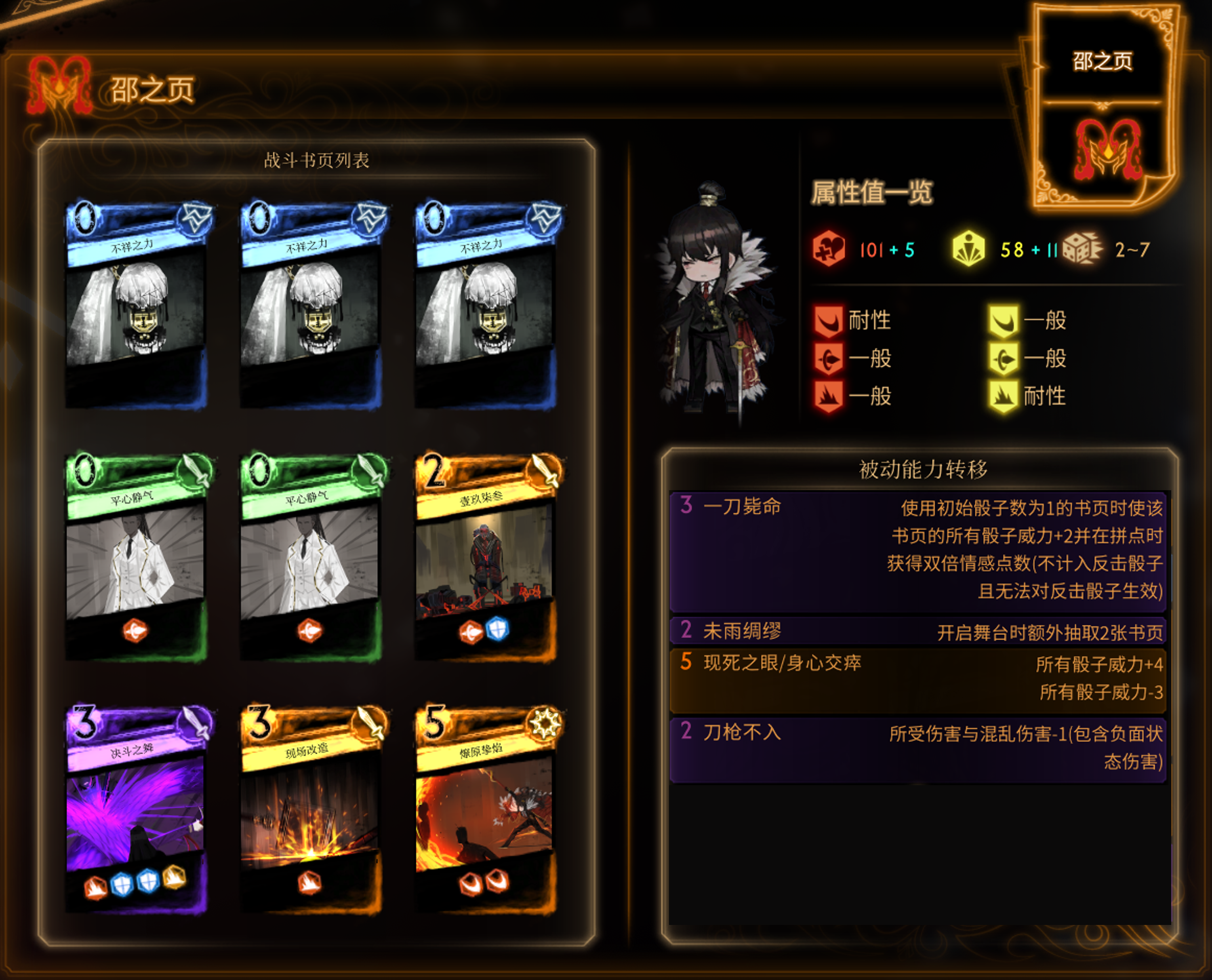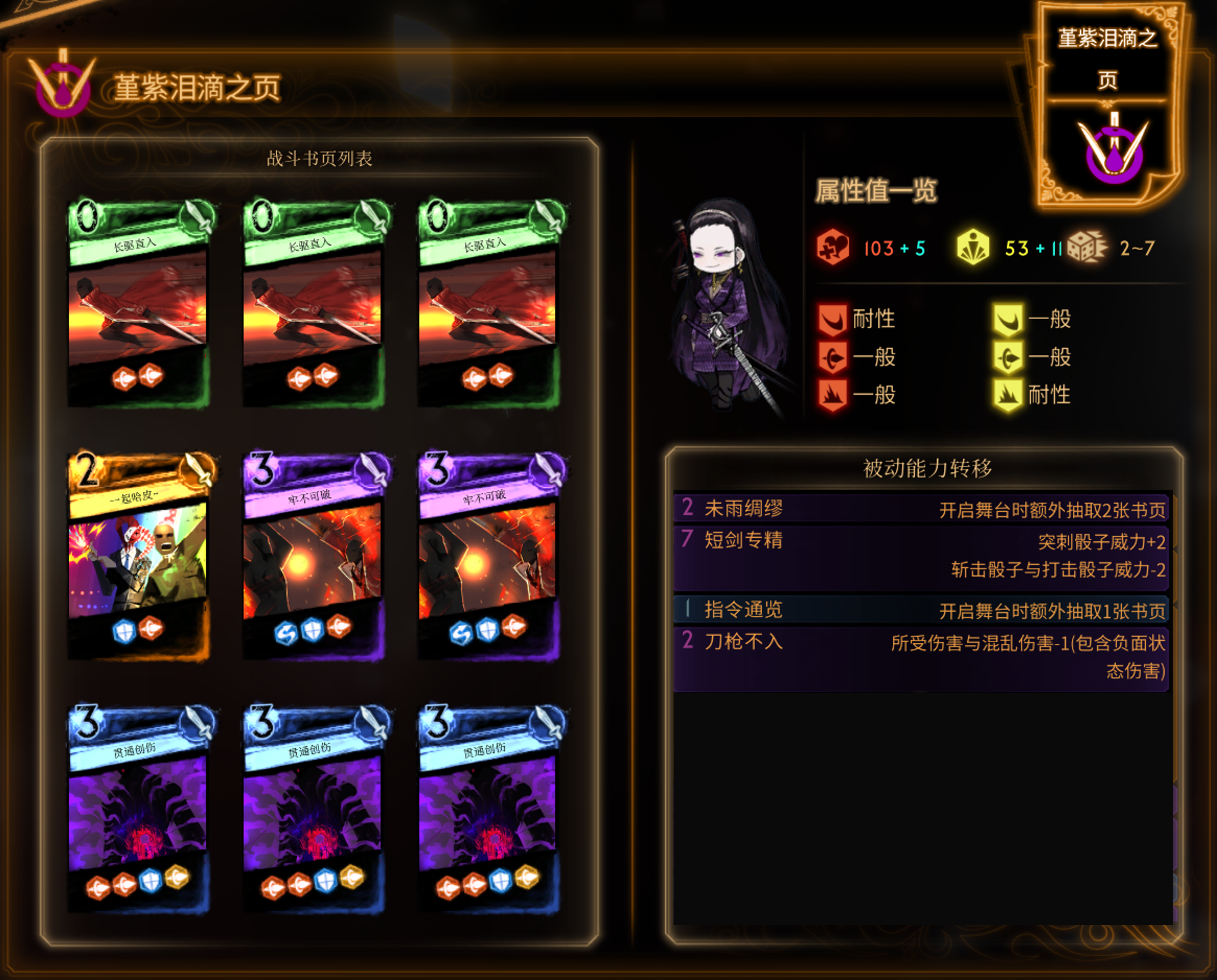 突刺,比较综合的卡组,优缺点不突出。敌人速度骰子多时可以实现永续 -13(因为长驱直入提供情感)。