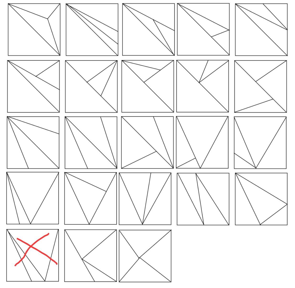 第一种和最后一种情况较为特殊,分别存在一个独立内点,在判断时需要额外注意内点在符合图形限制的范围内。